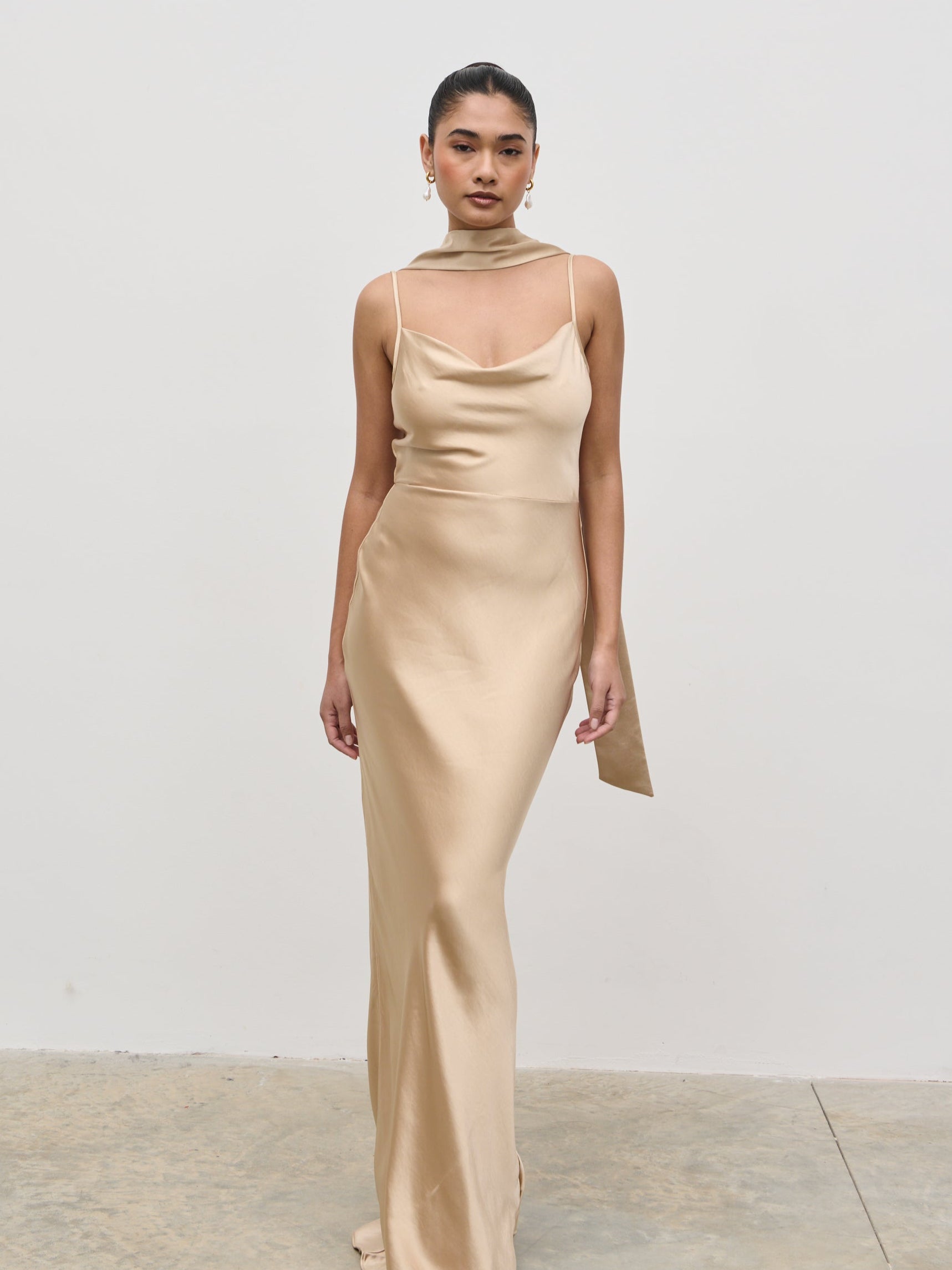 Please note our bridesmaid dresses are designed with a longer wearing length to accommodate taller bridesmaids. We recommend tailoring to achieve your desired final length.