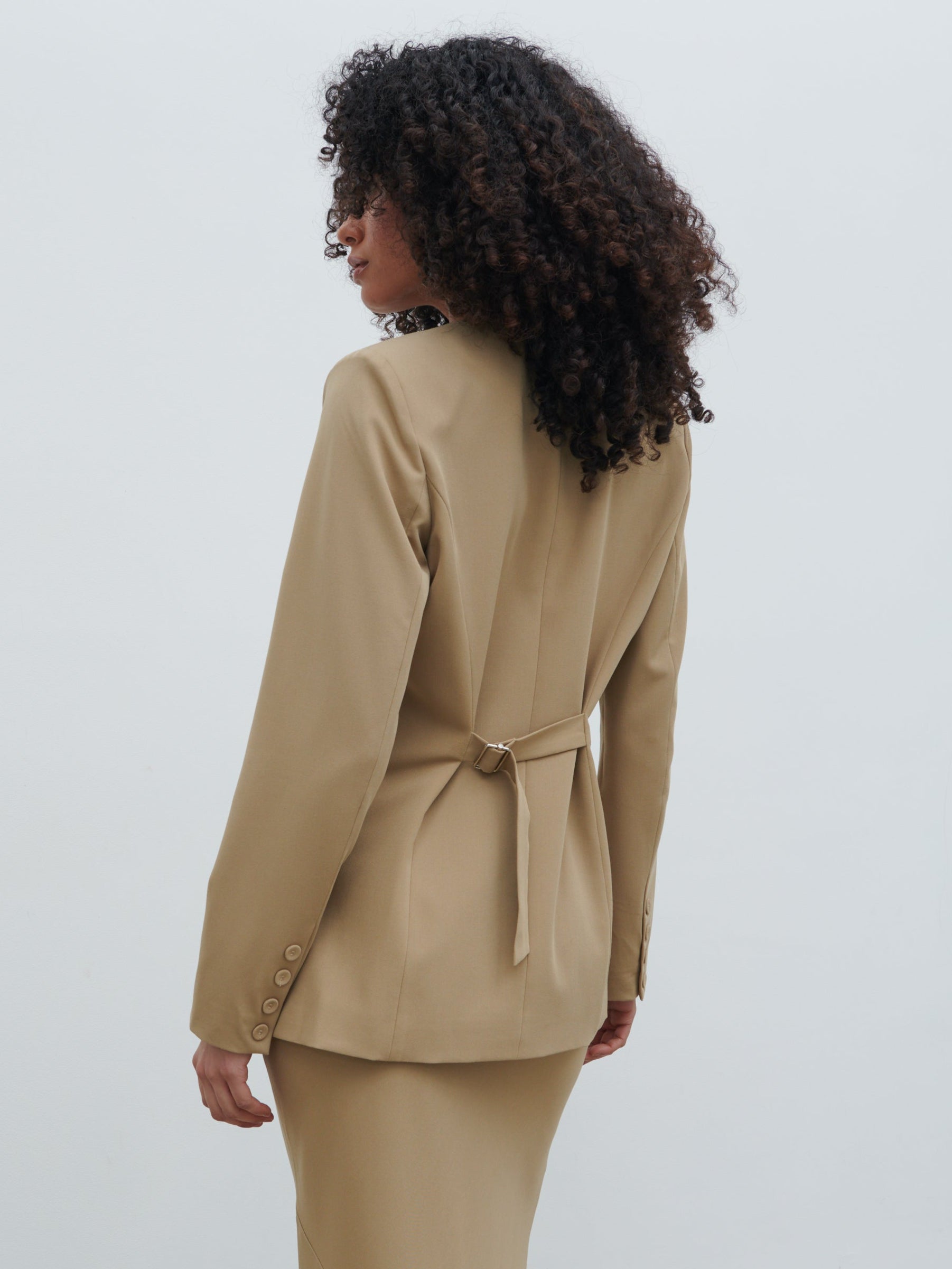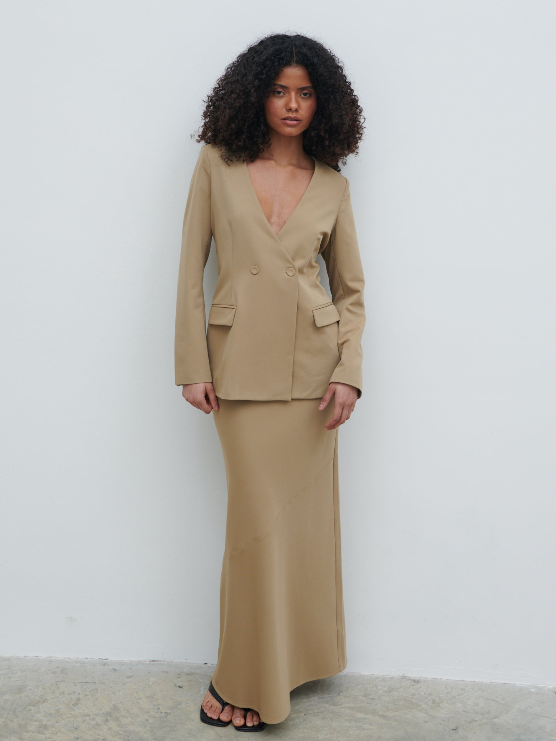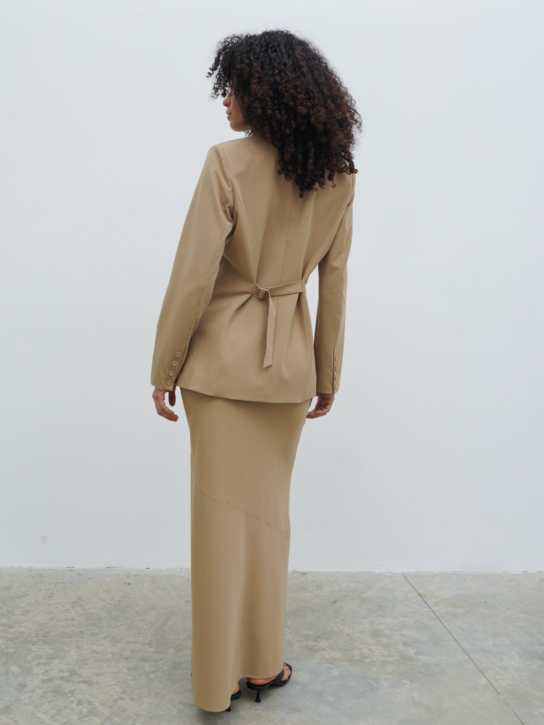 Jean Asymmetric Maxi Skirt - Camel Beige
