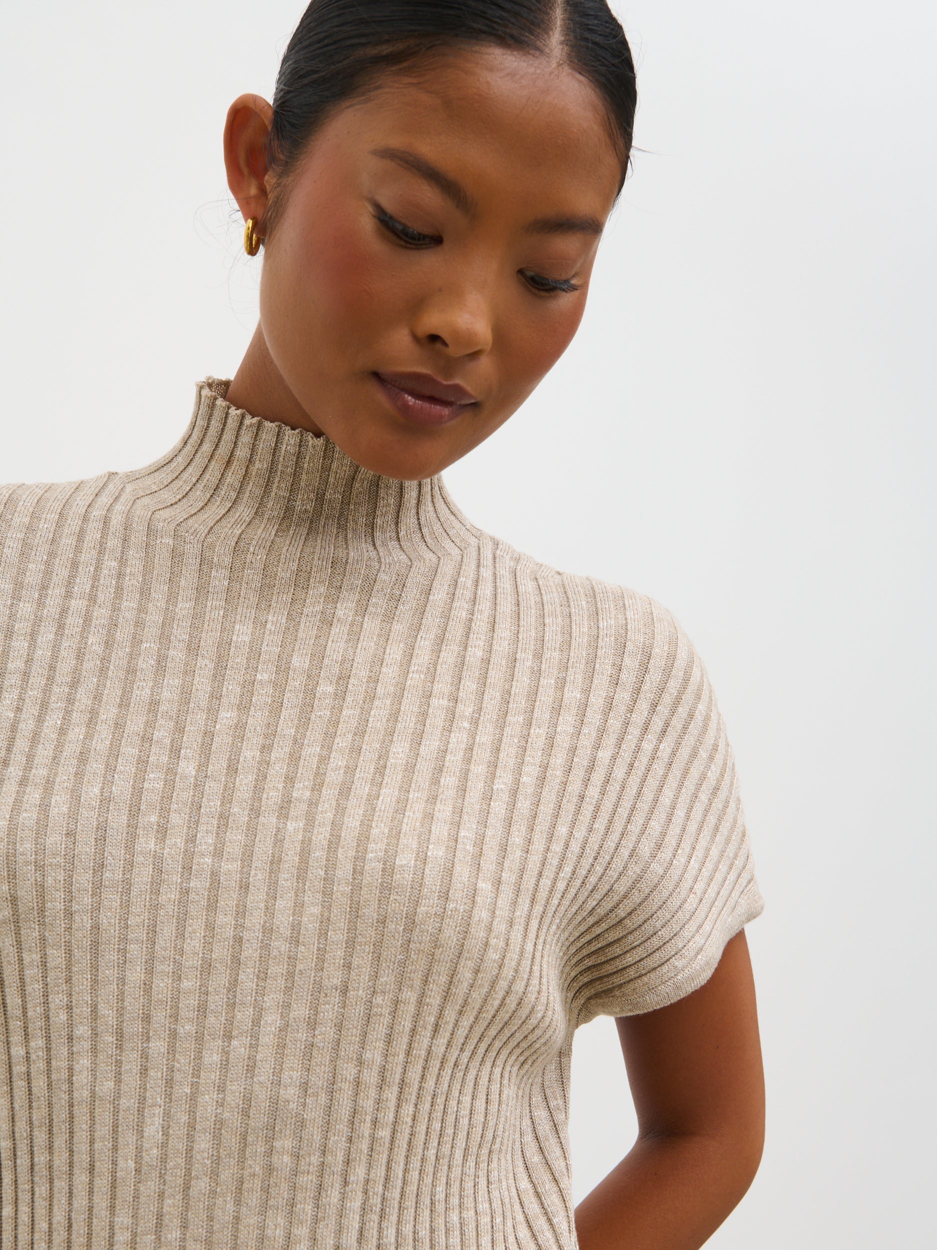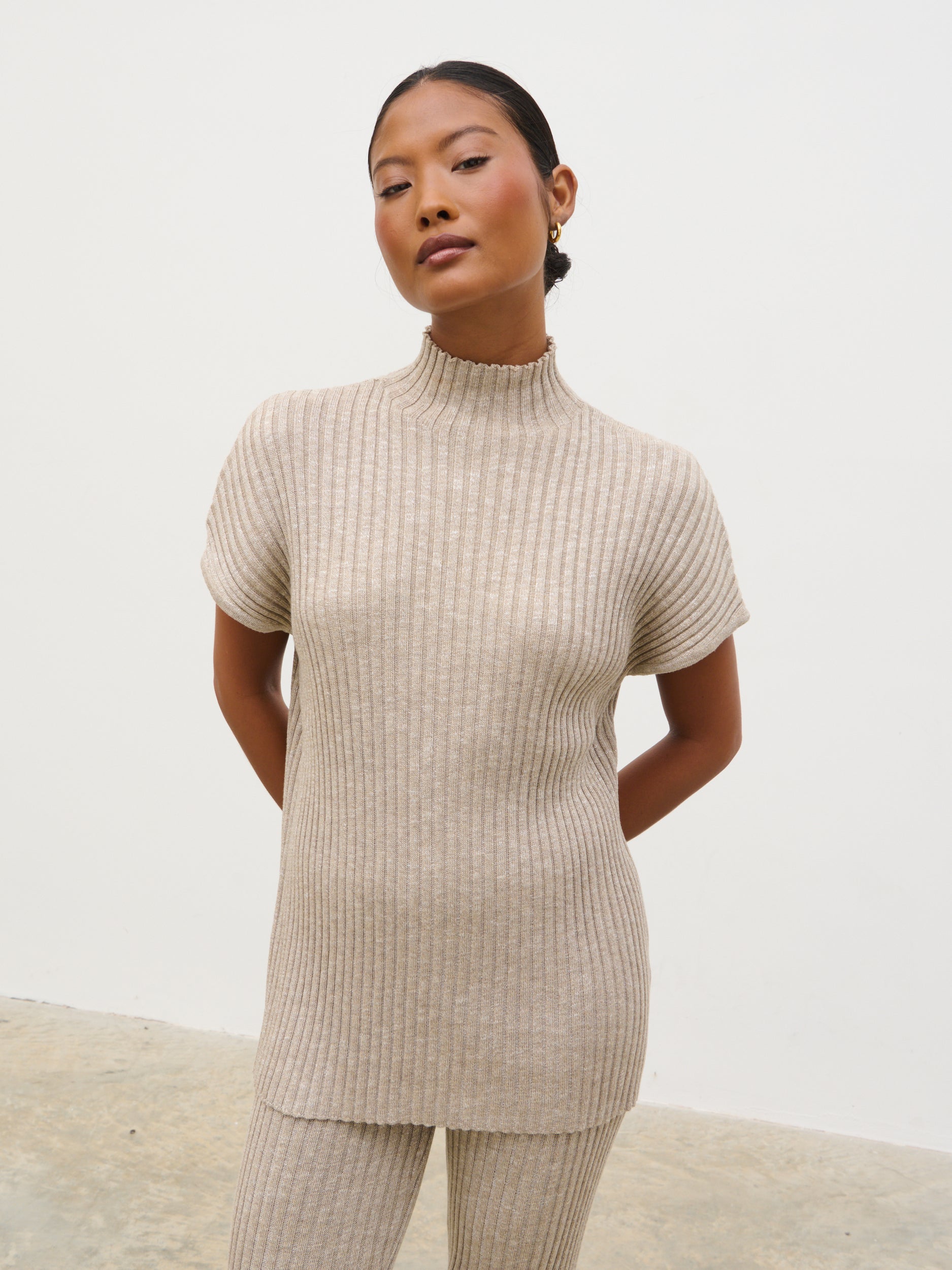 • Luxurious marl yarn with ribbed technique