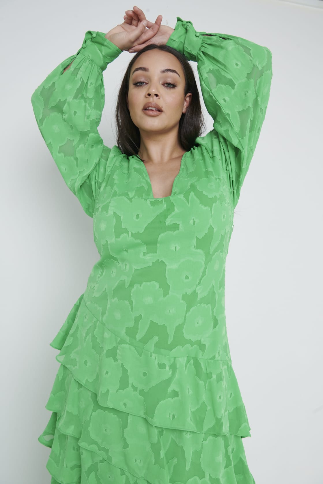 Déanta as ábhar jacquard álainn. Cuir le roinnt sála nach bhfuil ró-fheicthe iad le haghaidh cuma suntasach.