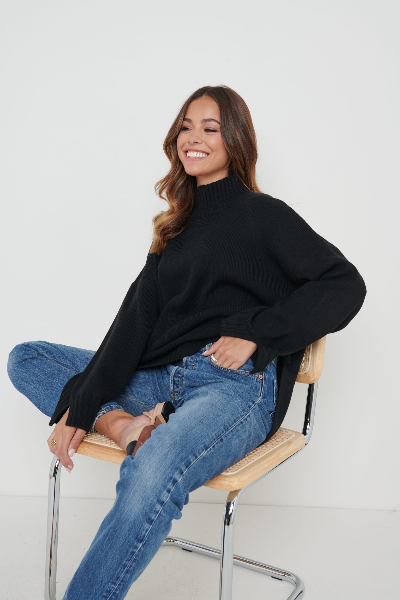 Featured from our Maximal Minimalism September October collection. The ‘Amory’ jumper is designed in an oversized fit, it has a grown neck and chunky sleeves. Wear yours with a pair of our trousers, or with denim to dress it down.