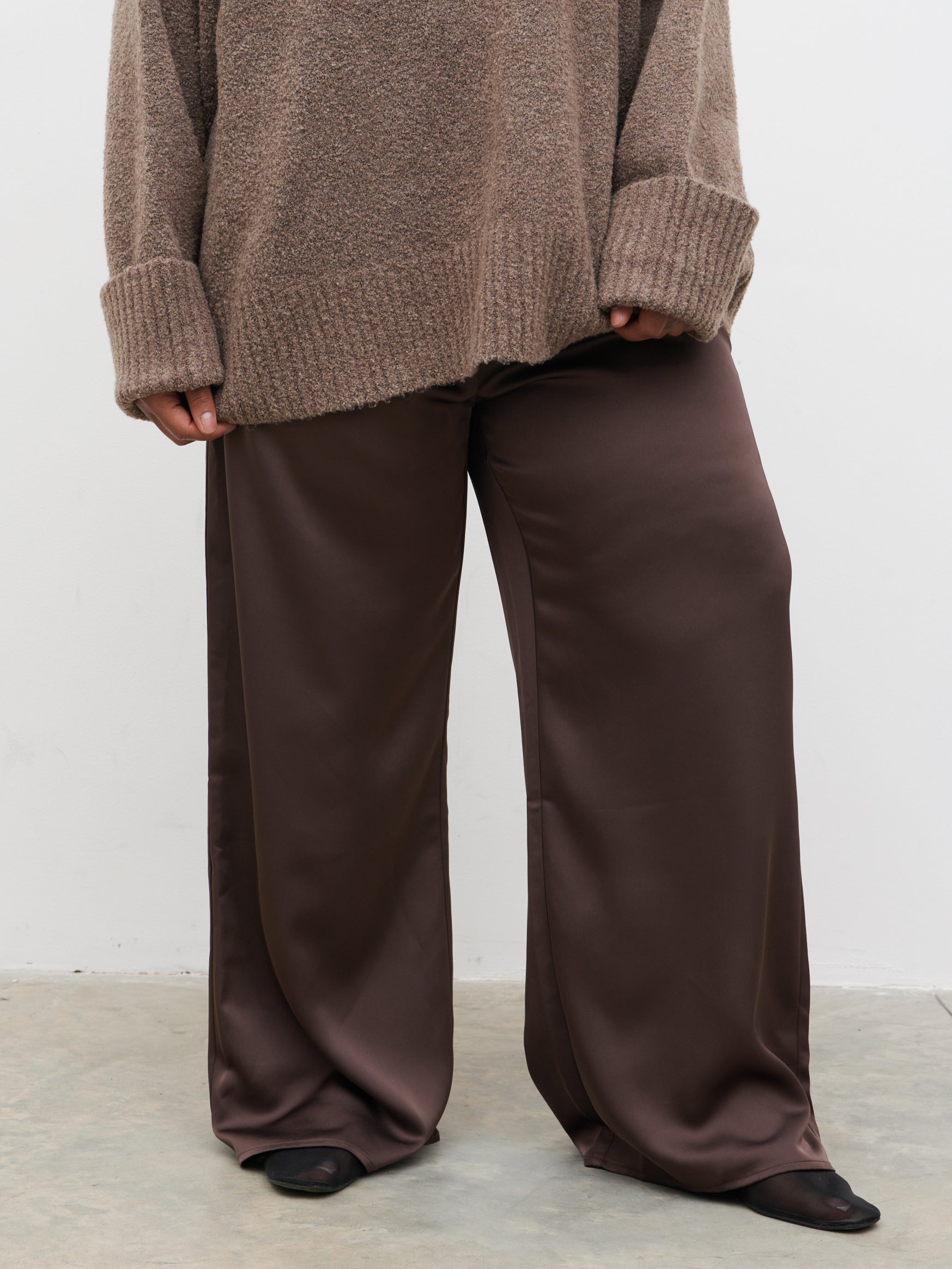 Breya Cape Floaty Satin Top Curve - Chocolate Brown