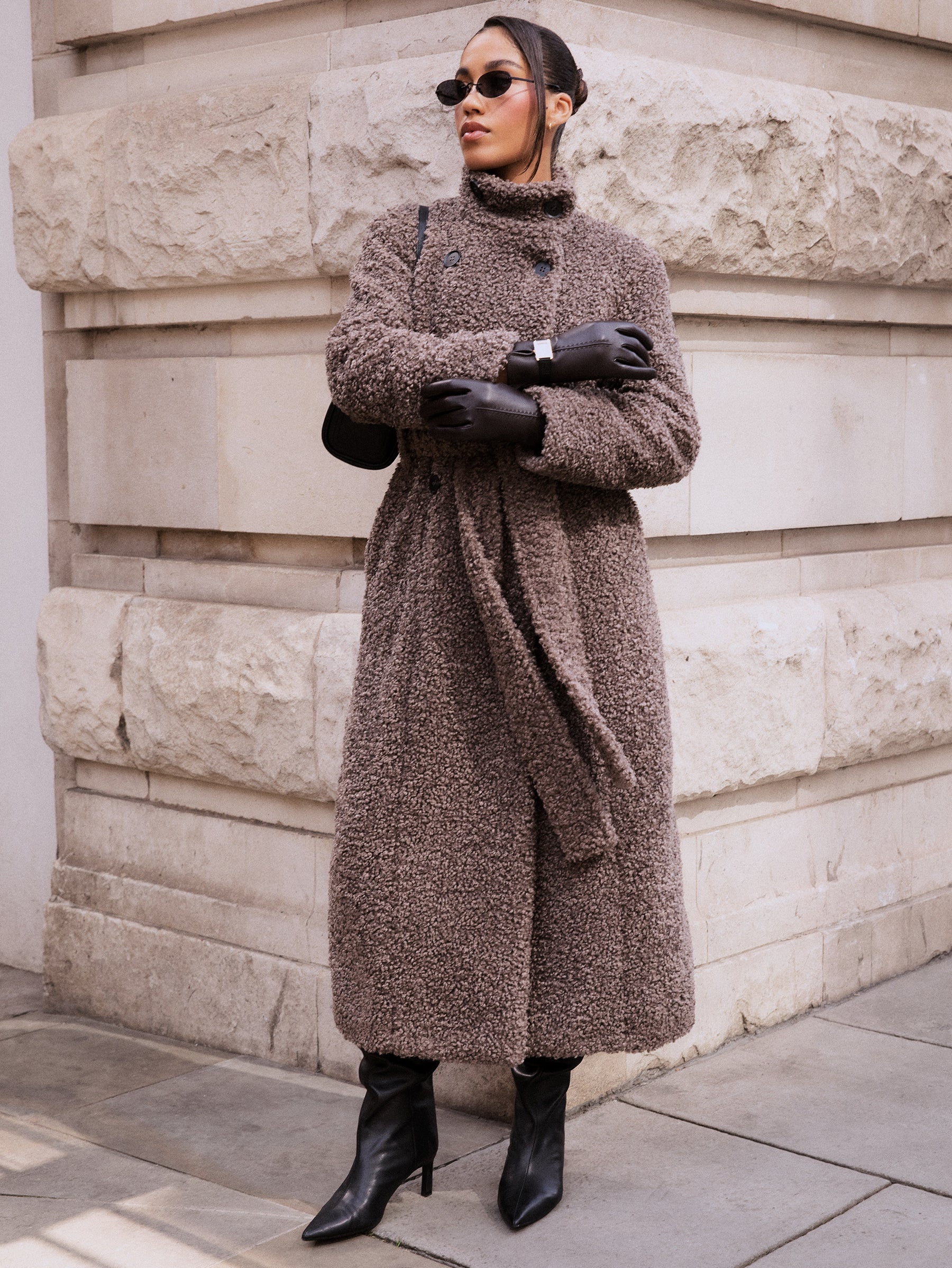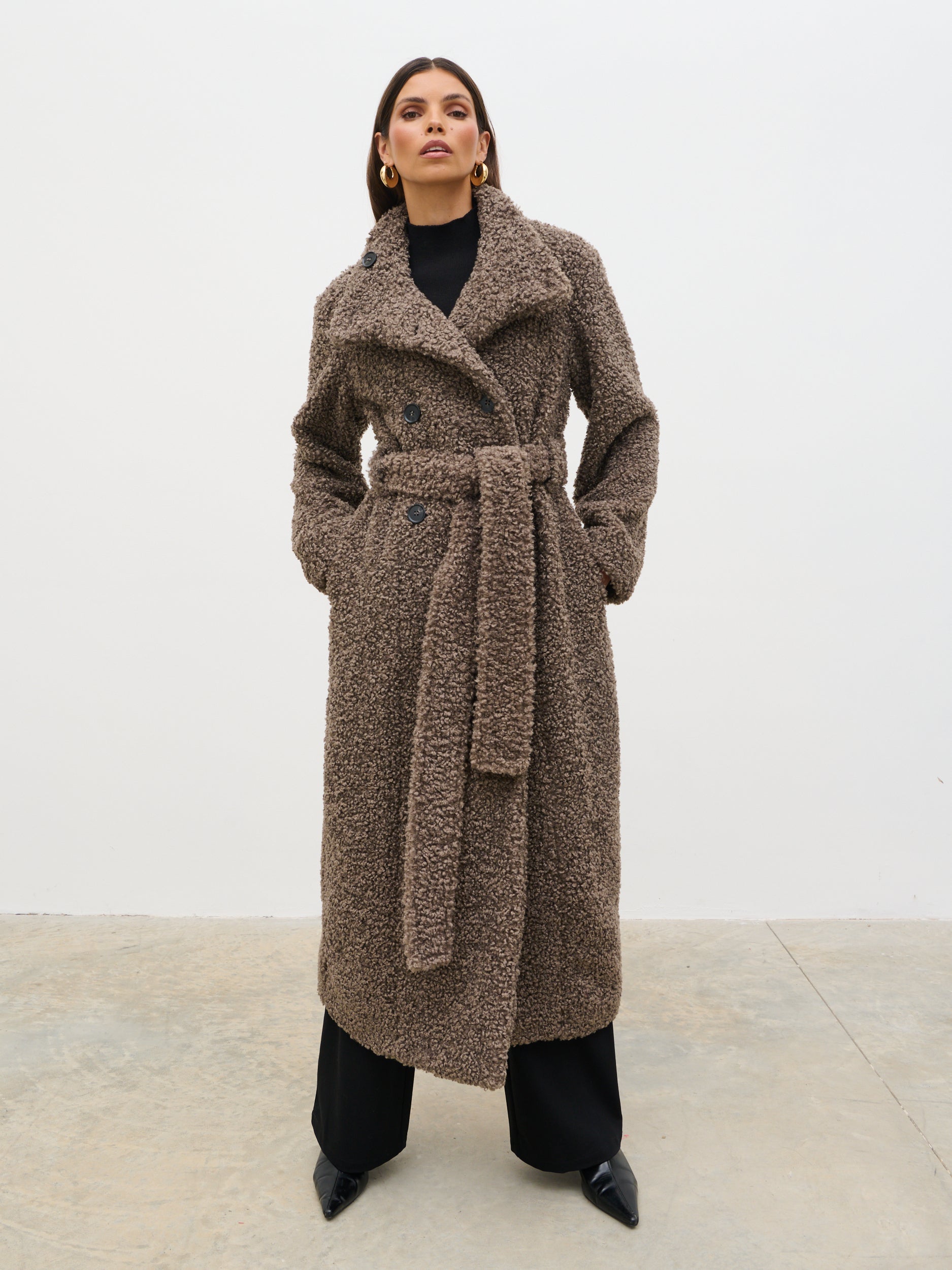 Atlas Boucle Funnel Neck Longline Coat