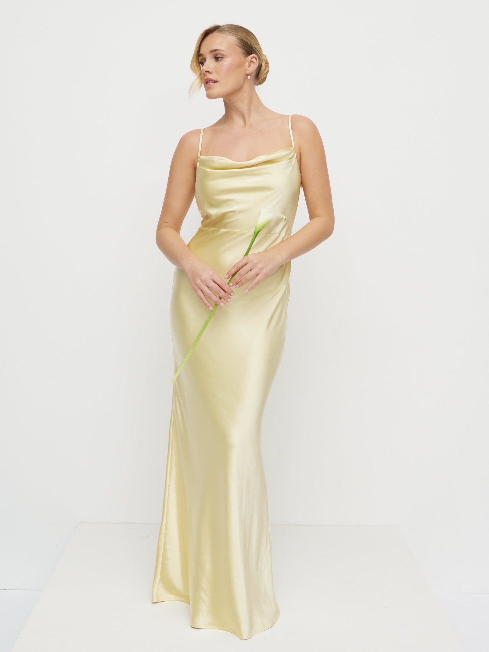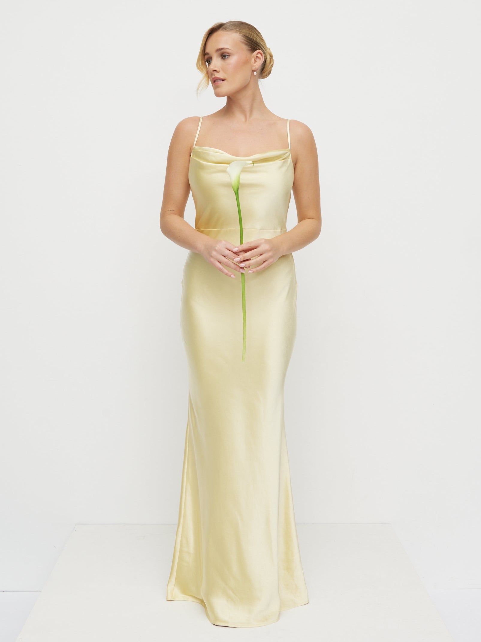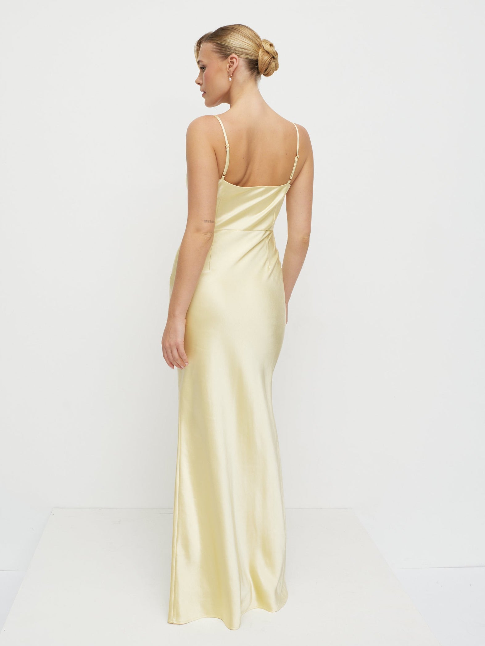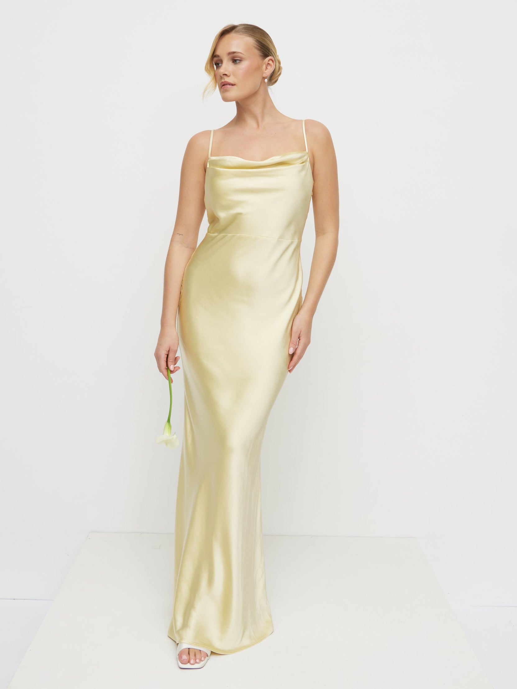 Please note our bridesmaid dresses are designed with a longer wearing length to accommodate taller bridesmaids. We recommend tailoring to achieve your desired final length.