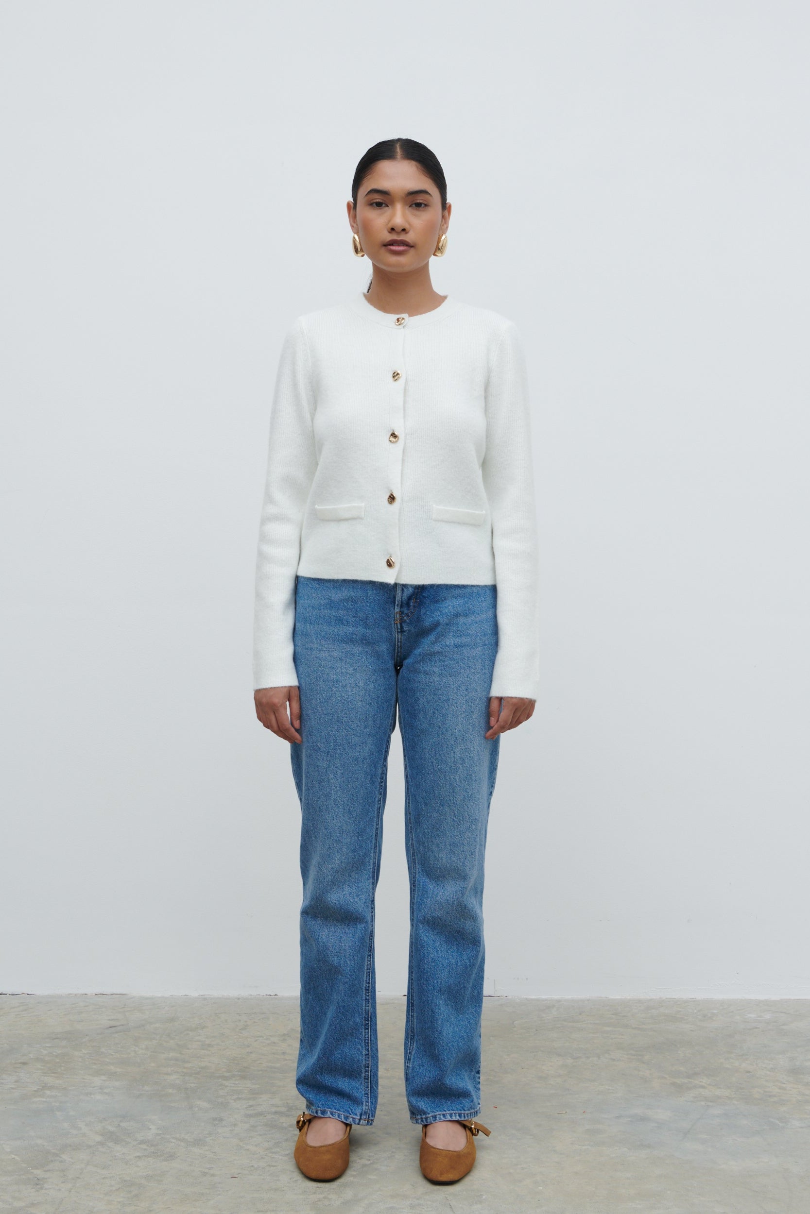 Sabrina Gold Button Knit Cardigan