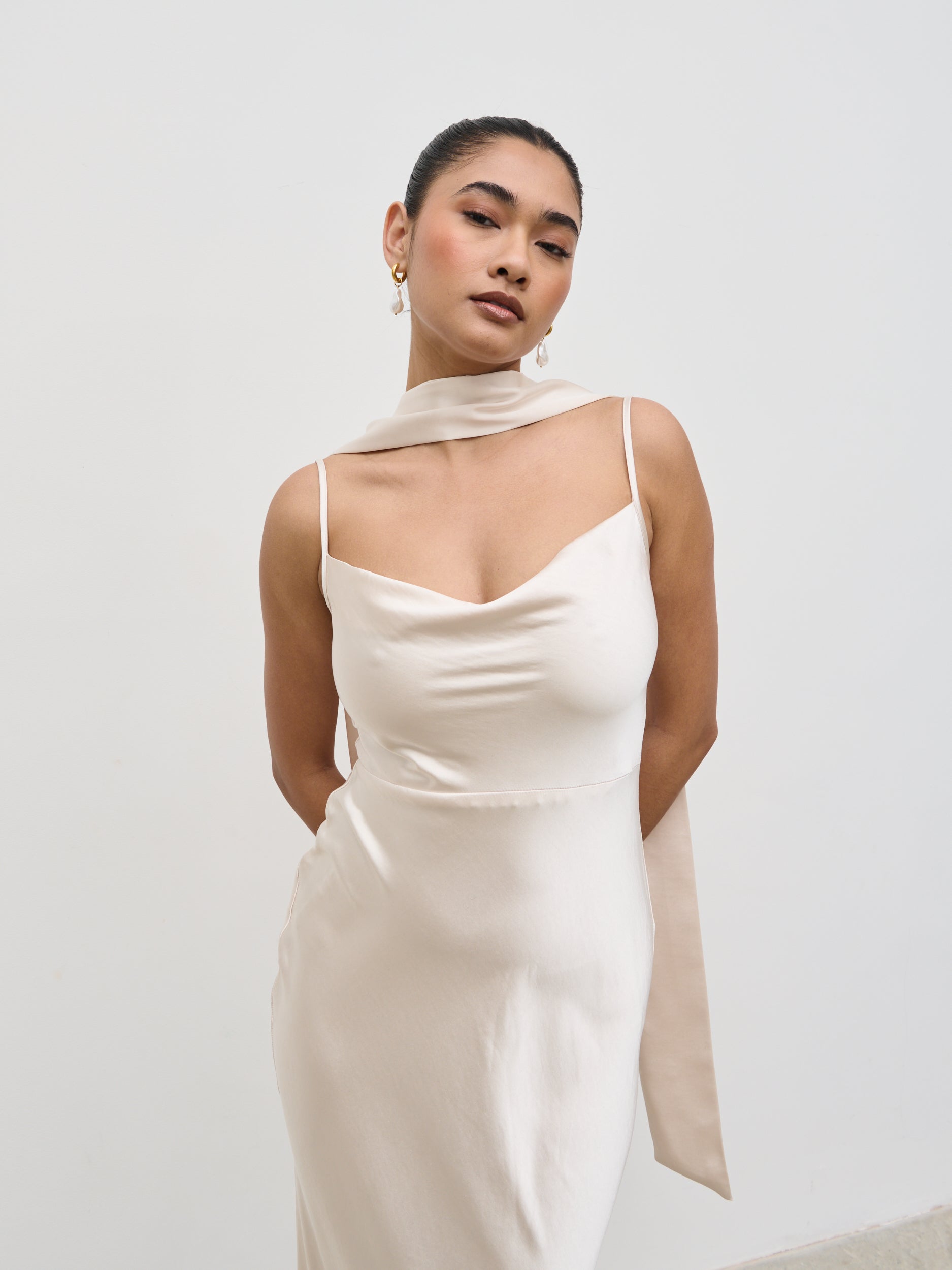 We have partnered with a local reprocessing manufacturer to transform our bridesmaids dresses into sashes, bow ties, and pocket squares - giving new life to ready-made garments. Any remaining fabric offcuts are then sent to their stitching academy, where they're recycled for future use. They take any offcuts of a reasonable size and use them to practice different stitching techniques as well as making garments from scratch if suitable.