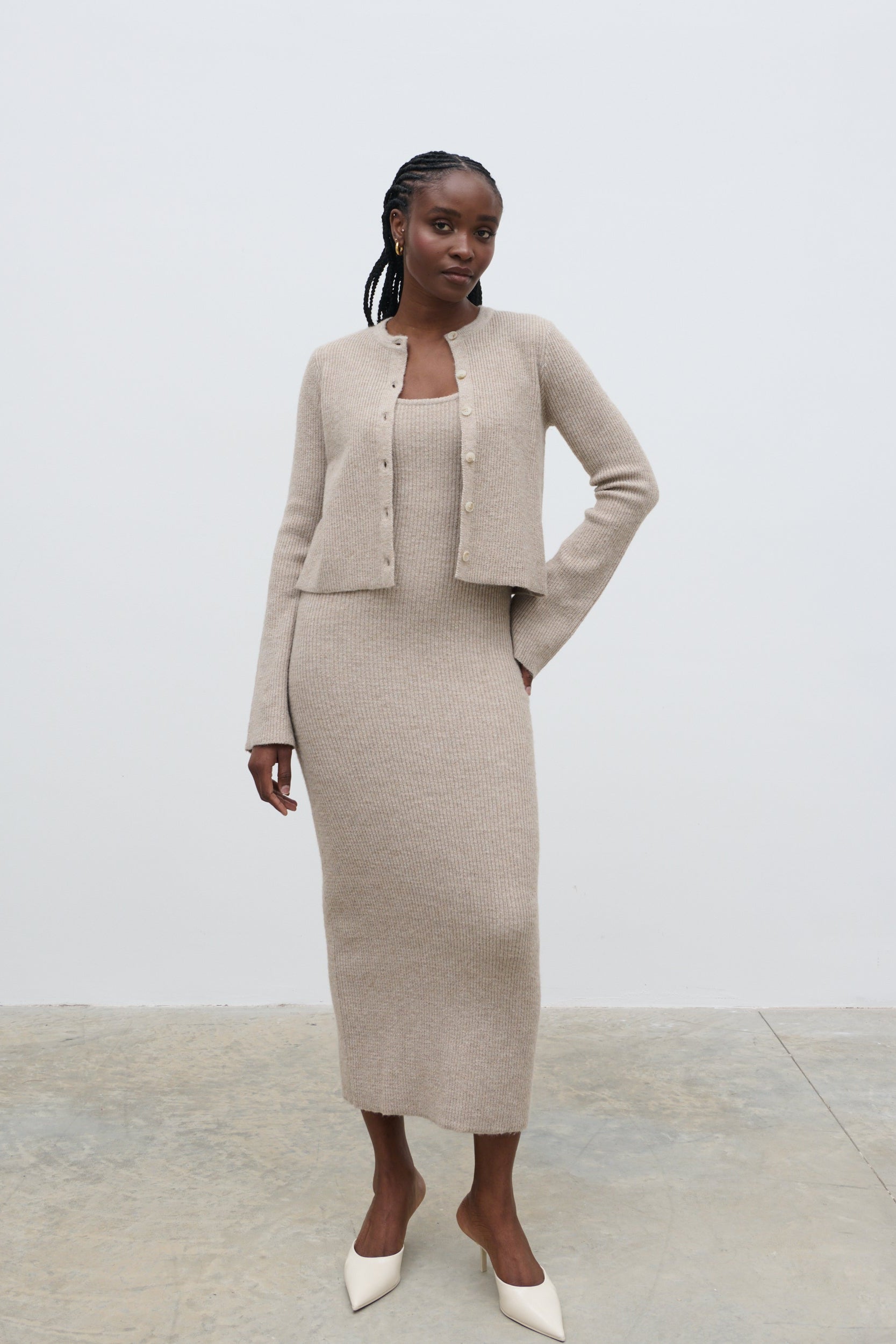 Winnie Strappy Knit Dress - Beige